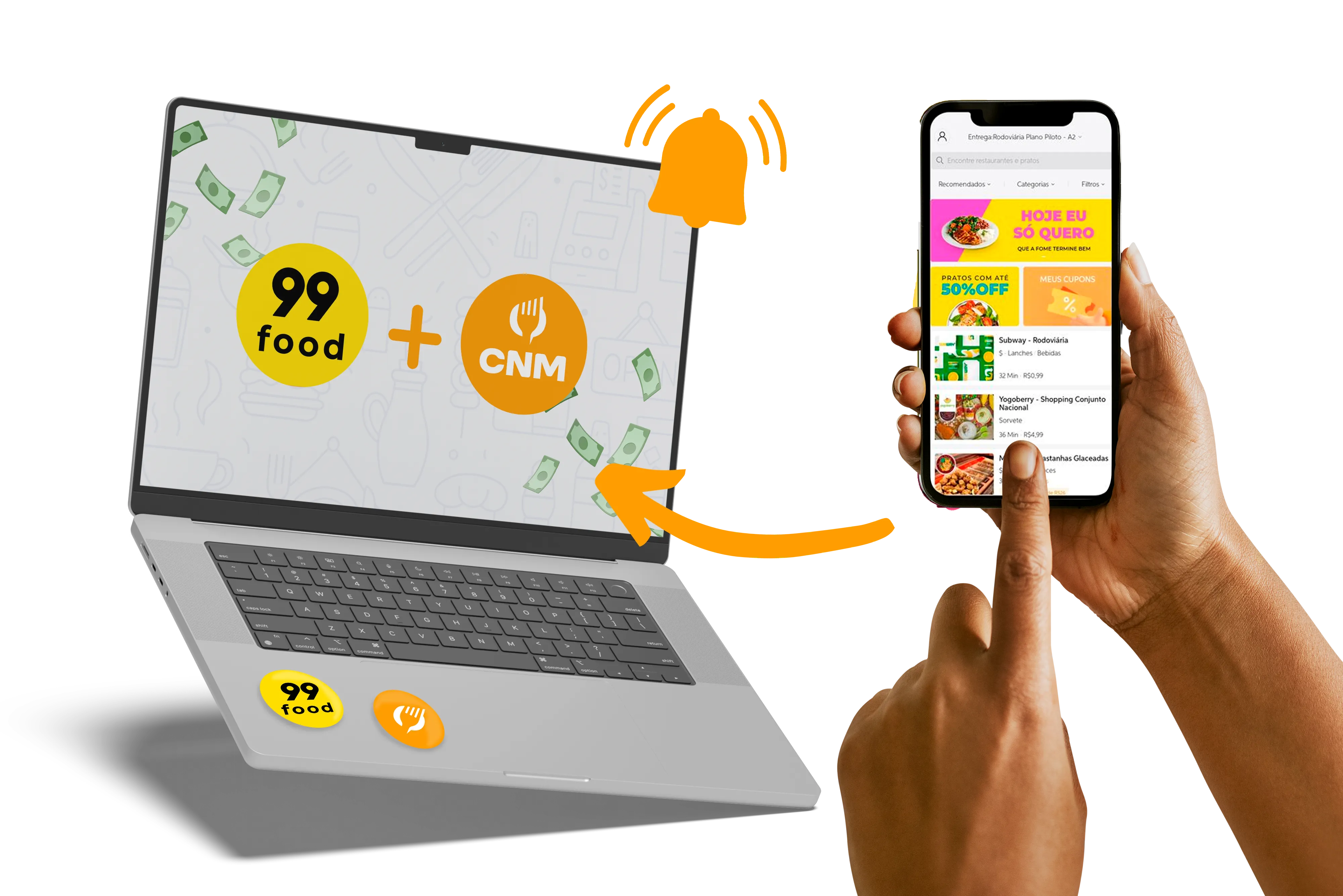 Mais clientes chegando pela 99Food + Controle total com o CNM = dinheiro no caixa!